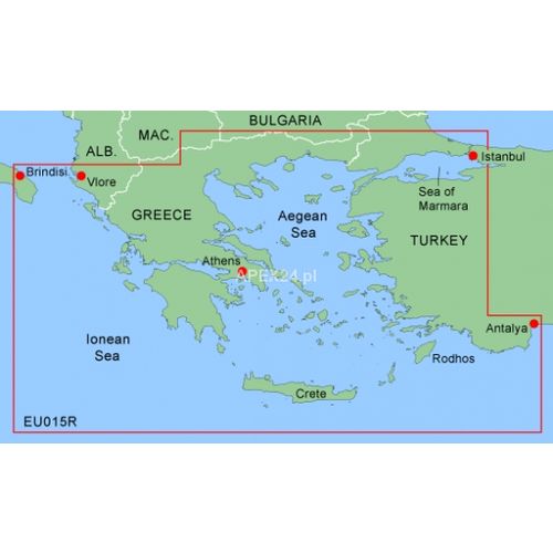 | BlueChart jest linią kartografii morskiej przeznaczoną wyłącznie dla urządzeń firmy Garmin, które posiadają slot kart pamięci formatu Garmin (Region 015R Aegean Sea and Sea of Marmara). Mapy te przeznaczone są dla urządzeń przenośnych oraz dość dużej grupy ploterów stacjonarnych. Te szczegółowe, elektroniczne mapy morskie, wyświetlane na ekranie urządzenia Garmin, wyglądają podobnie jak tradycyjne mapy papierowe. Ta linia zorientowanych obiektowo produktów kartograficznych jest zapojektowana tak, aby umożliwić interaktywne przeglądanie map morskich. Szczegółowy opis obiektów znajdujących się na mapach, bezproblemowo odczytać można poprzez naciśnięcie jednego przycisku. W czasie przesuwania kursora mapy, wyświetlane są opisy obiektów znajdujących się na mapie: głębokości, nazwy pomocy nawigacyjnych, oznaczenia map, itp. Mapy BlueChart udostępniają cieniowanie akwenów na podstawie linii głębokości, posiadają oznaczone strefy pływów, wraki, pomoce nawigacyjne, plany portów, obszary z restrykcjami, kotwicowiska, itp. Dodatkowo produkty BlueChart zawierają informacje z map papierowych użytych jako źródła w procesie digitalizacji, takie jak numer mapy, jej nazwa, skala, data wydania oraz notki dla marynarzy. Mapa BlueChart dostępna w formie fabrycznie zaprogramowanych kart pamięci formatu Garmin zawierająca jeden region mapy BlueChart. W przypadku zakupu mapy BlueChart na gotowej karcie pamięci, użytkownik decyduje o tym, jaki region chce użytkować już na etapie zakupu takiej karty. Karta taka może być użytkowana w każdym, kompatybilnym urządzeniu GPS (możliwe jest jej przekładanie pomiędzy urządzeniami), nie ma natomiast możliwości skopiowania zawartości takiej karty na inną kartę lub do PC. Karta ta nie może również zostać wykorzystana do zapisania jakichkolwiek danych z MapSource lub poprzez urządzenie GPS, ponieważ spowoduje to usunięcie map zapisanych fabrycznie na karcie pamięci. Garmin, w żadnym wypadku, nie refunduje utraconych w ten sposób map, jak również nie wymienia skasowanych kart na nowe. Mapy na kartach pamięci nie umożliwiają używania mapy na komputerze. Użycie mapy jest niezwykle proste - wystarczy umieścić kartę w slocie kart pamięci urządzenia. Nie wymaga instalacji, jest od razu gotowa do pracy. Co oferuje BlueChart? mapy wektorowe o wyglądzie analogicznym do map tradycyjnych, pokrywające swym zasięgiem obszar wód morskich, duże obszary pokrycia (regiony) ułatwiające wybór żądanego regionu, zorientowaną obiektowo mapę dostarczającą kompletny opis obiektów oznaczonych na tej mapie, prezentacja 'mapa wg mapy' zapewnia najwyższą możliwą rozdzielczość i szczegółowość udostępnianą przez mapę źródłową, cieniowanie akwenów w oparciu o linie głębokości, oznaczenie stref pływów wraz z głębokościami pomoce nawigacyjne z oznaczeniem zasięgu i pokrycia, włączając w to sektory świateł nawigacyjnych, plany portów, dane wykorzystywane do wykreślania krzywych pływów, opis nazwy mapy pierwotnej, jej numer, wydawcę, datę wydania i notki dla marynarzy, wraki, obszary z restrykcjami, kotwicowiska, płycizny, itp. mosty z opisem typu konstrukcji, długości, itp zgodność danych z układem WGS 84 Kompatybilne urządzenia: Wszystkie urządzenia Garmin posiadające slot kart pamięci formatu Garmin : |