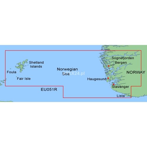 | BlueChart jest linią kartografii morskiej przeznaczoną wyłącznie dla urządzeń firmy Garmin, które posiadają slot kart pamięci formatu Garmin (Region 051R Lista - Sognefjorden). Mapy te przeznaczone są dla urządzeń przenośnych oraz dość dużej grupy ploterów stacjonarnych. Te szczegółowe, elektroniczne mapy morskie, wyświetlane na ekranie urządzenia Garmin, wyglądają podobnie jak tradycyjne mapy papierowe. Ta linia zorientowanych obiektowo produktów kartograficznych jest zapojektowana tak, aby umożliwić interaktywne przeglądanie map morskich. Szczegółowy opis obiektów znajdujących się na mapach, bezproblemowo odczytać można poprzez naciśnięcie jednego przycisku. W czasie przesuwania kursora mapy, wyświetlane są opisy obiektów znajdujących się na mapie: głębokości, nazwy pomocy nawigacyjnych, oznaczenia map, itp. Mapy BlueChart udostępniają cieniowanie akwenów na podstawie linii głębokości, posiadają oznaczone strefy pływów, wraki, pomoce nawigacyjne, plany portów, obszary z restrykcjami, kotwicowiska, itp. Dodatkowo produkty BlueChart zawierają informacje z map papierowych użytych jako źródła w procesie digitalizacji, takie jak numer mapy, jej nazwa, skala, data wydania oraz notki dla marynarzy. Mapa BlueChart dostępna w formie fabrycznie zaprogramowanych kart pamięci formatu Garmin zawierająca jeden region mapy BlueChart. W przypadku zakupu mapy BlueChart na gotowej karcie pamięci, użytkownik decyduje o tym, jaki region chce użytkować już na etapie zakupu takiej karty. Karta taka może być użytkowana w każdym, kompatybilnym urządzeniu GPS (możliwe jest jej przekładanie pomiędzy urządzeniami), nie ma natomiast możliwości skopiowania zawartości takiej karty na inną kartę lub do PC. Karta ta nie może również zostać wykorzystana do zapisania jakichkolwiek danych z MapSource lub poprzez urządzenie GPS, ponieważ spowoduje to usunięcie map zapisanych fabrycznie na karcie pamięci. Garmin, w żadnym wypadku, nie refunduje utraconych w ten sposób map, jak również nie wymienia skasowanych kart na nowe. Mapy na kartach pamięci nie umożliwiają używania mapy na komputerze. Użycie mapy jest niezwykle proste - wystarczy umieścić kartę w slocie kart pamięci urządzenia. Nie wymaga instalacji, jest od razu gotowa do pracy. Co oferuje BlueChart? mapy wektorowe o wyglądzie analogicznym do map tradycyjnych, pokrywające swym zasięgiem obszar wód morskich, duże obszary pokrycia (regiony) ułatwiające wybór żądanego regionu, zorientowaną obiektowo mapę dostarczającą kompletny opis obiektów oznaczonych na tej mapie, prezentacja 'mapa wg mapy' zapewnia najwyższą możliwą rozdzielczość i szczegółowość udostępnianą przez mapę źródłową, cieniowanie akwenów w oparciu o linie głębokości, oznaczenie stref pływów wraz z głębokościami pomoce nawigacyjne z oznaczeniem zasięgu i pokrycia, włączając w to sektory świateł nawigacyjnych, plany portów, dane wykorzystywane do wykreślania krzywych pływów, opis nazwy mapy pierwotnej, jej numer, wydawcę, datę wydania i notki dla marynarzy, wraki, obszary z restrykcjami, kotwicowiska, płycizny, itp. mosty z opisem typu konstrukcji, długości, itp zgodność danych z układem WGS 84 Kompatybilne urządzenia: Wszystkie urządzenia Garmin posiadające slot kart pamięci formatu Garmin : |